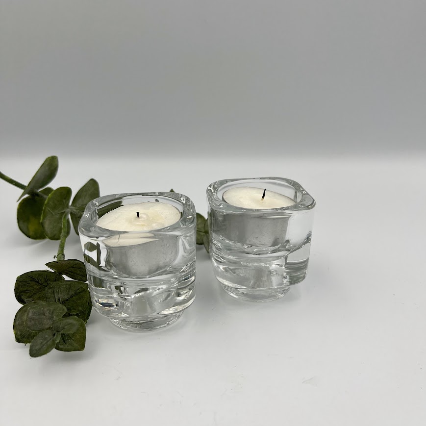 Sæt med 2 små fyrfadsstager i klart glas med et enkelt og tidløst design.