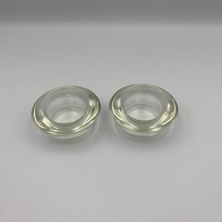 Sæt med 2 enkle og stilfulde fyrfadsstager i klart glas med et let grønligt skær.