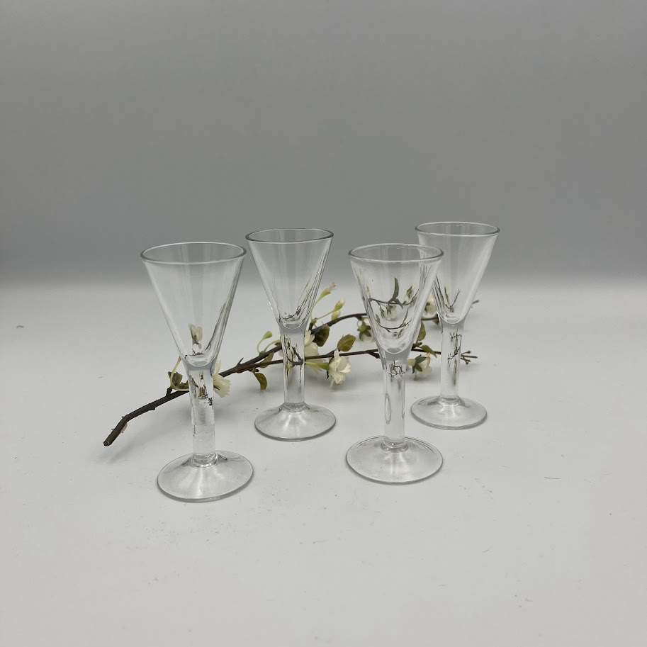 4 stk. små glas på stilk – ideelle som snapseglas i klassisk design.
