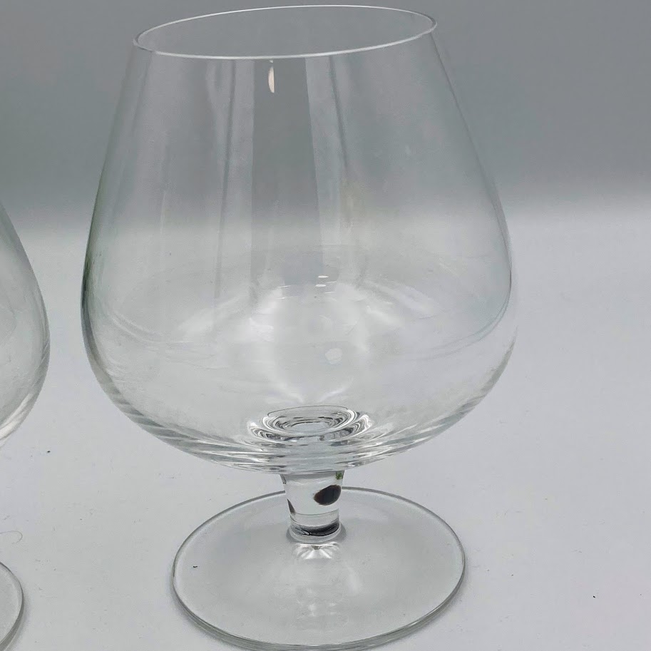 Sæt med 4 cognacglas / brandyglas i klart glas med rund, rummelig bowle og kort stilk.