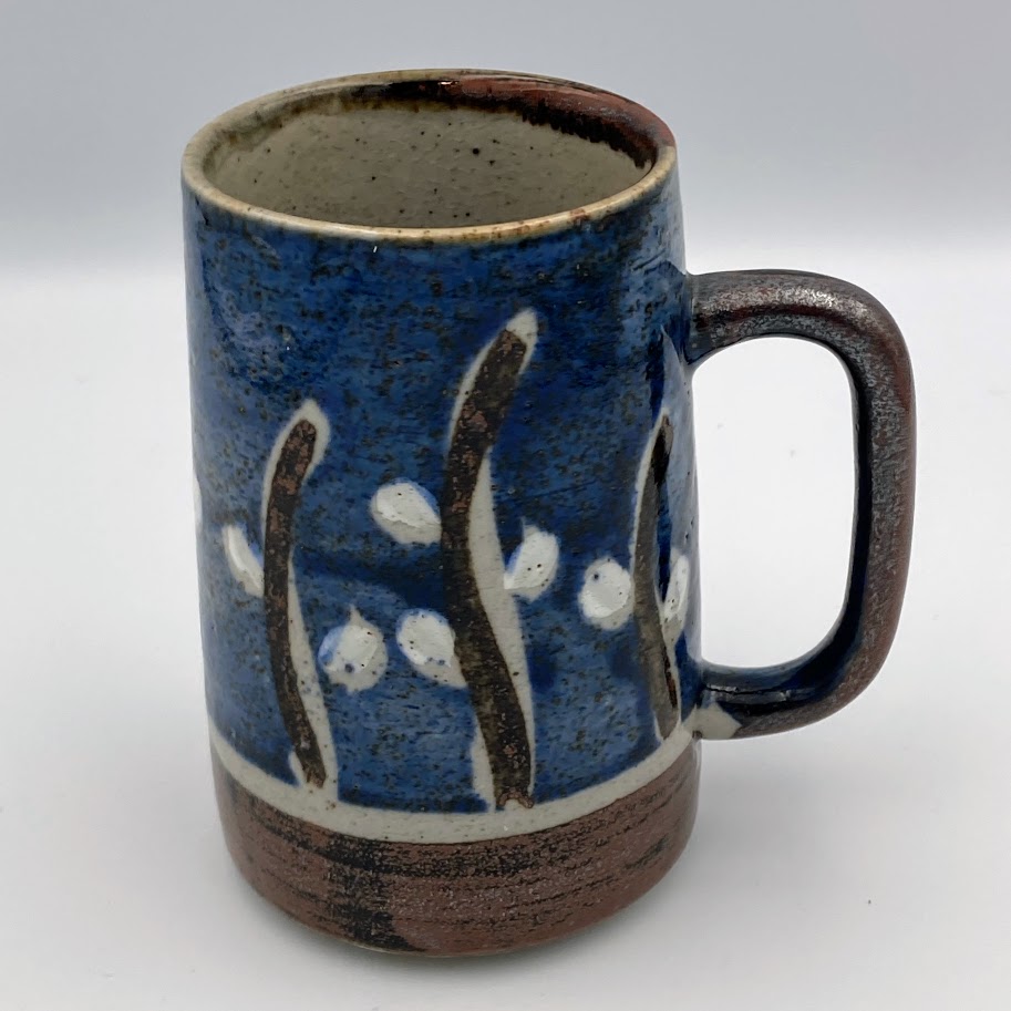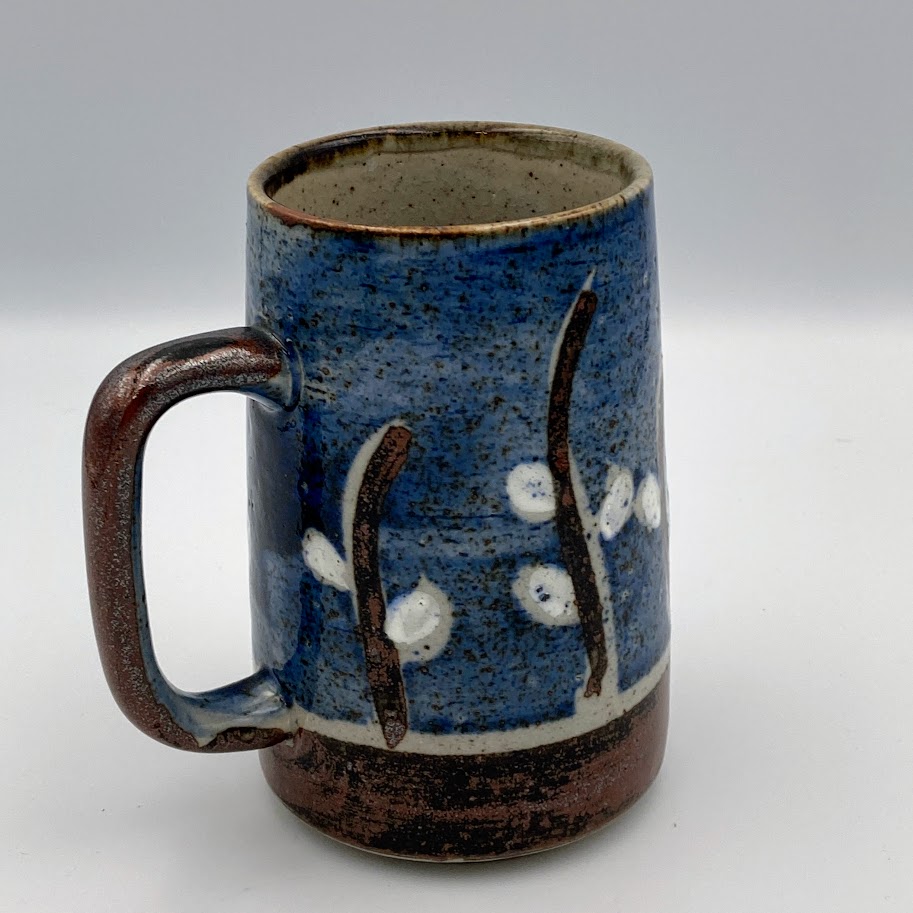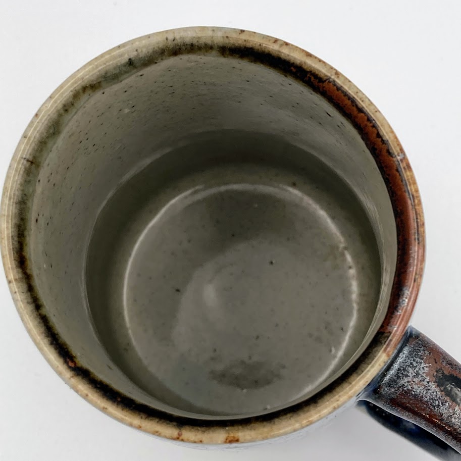 Keramik krus i blå og brune nuancer med flot spil i glasuren. Kruset har et enkelt og rustikt udtryk