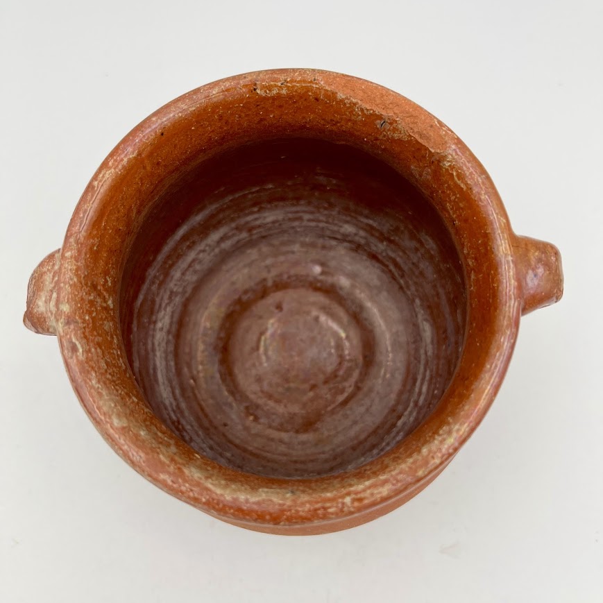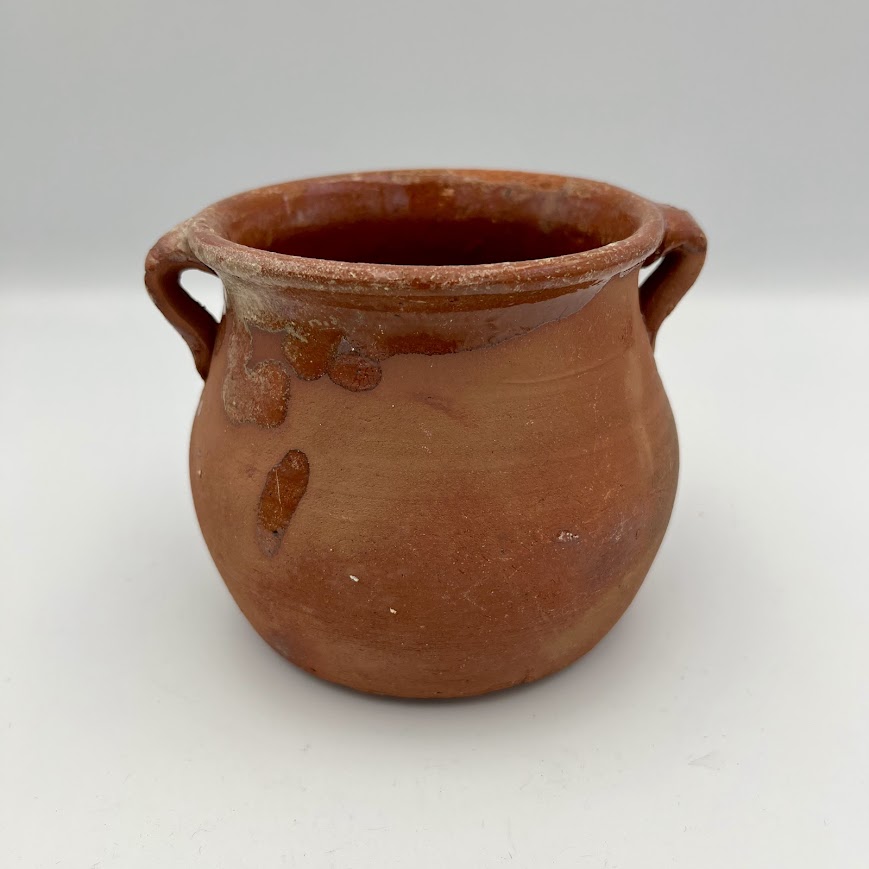 Charmerende lille lerkrukke i klassisk rustik stil med to små hanke.