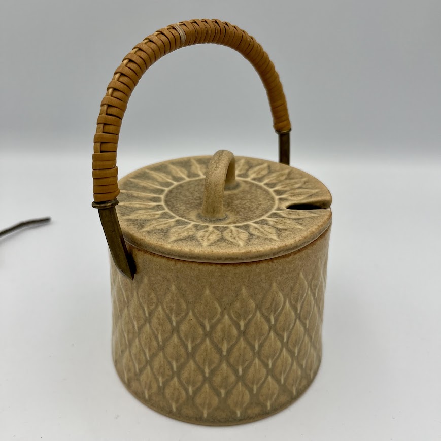 Krukken er udført i en varm brunlig glasur med det ikoniske reliefmønster, som giver et elegant og genkendeligt udtryk.