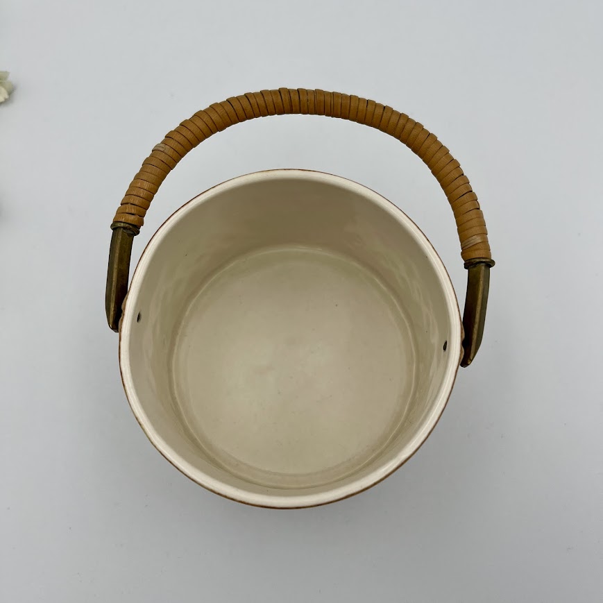 Den er udstyret med låg og en praktisk hank i flet, som både tilfører funktionalitet og et hyggeligt, klassisk præg.