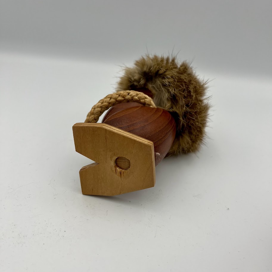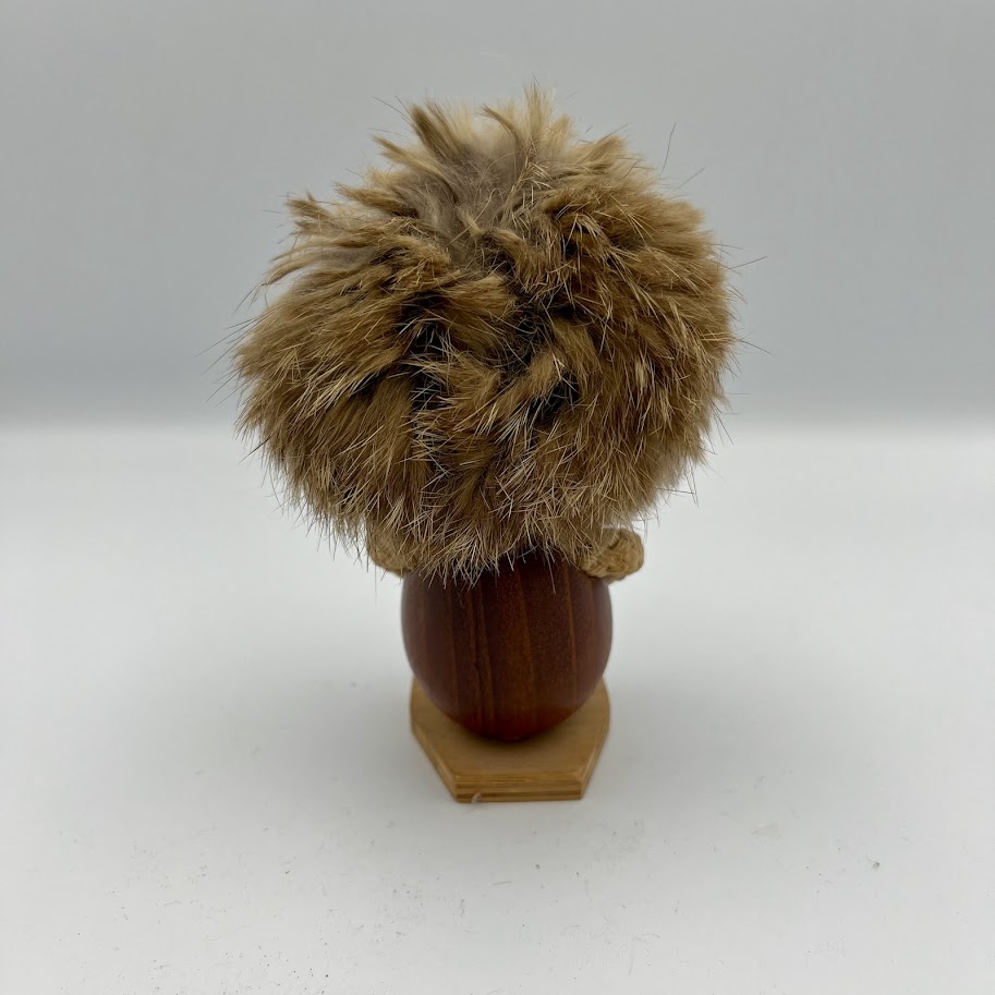 Sjov og dekorativ træfigur med naturhår og flettede detaljer – retro og charmerende.