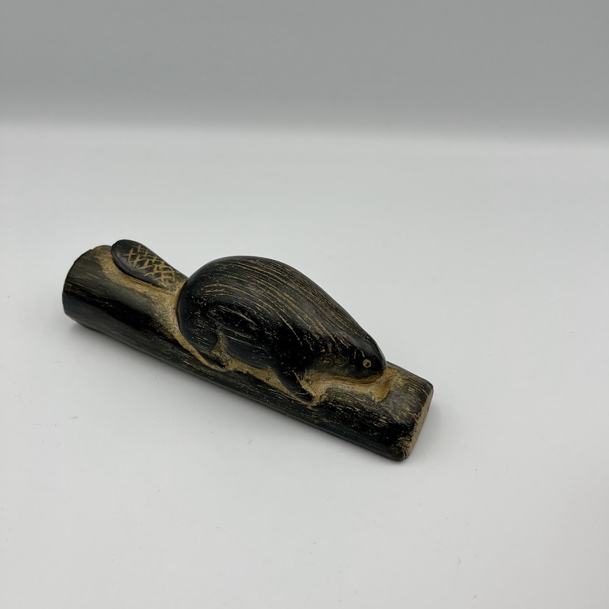 Træfigur af bæver fra Canada med rustikt udtryk.