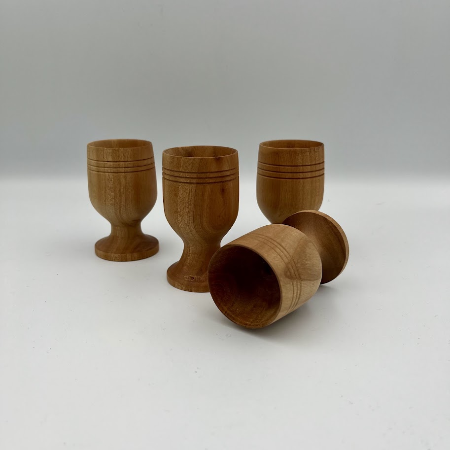 Sæt med fire klassiske æggebægre i massivt træ.