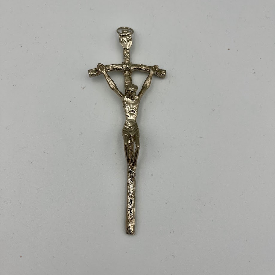 Klassisk krucifiks i metal med ophæng – dekorativt og religiøst symbol med lette brugsspor.