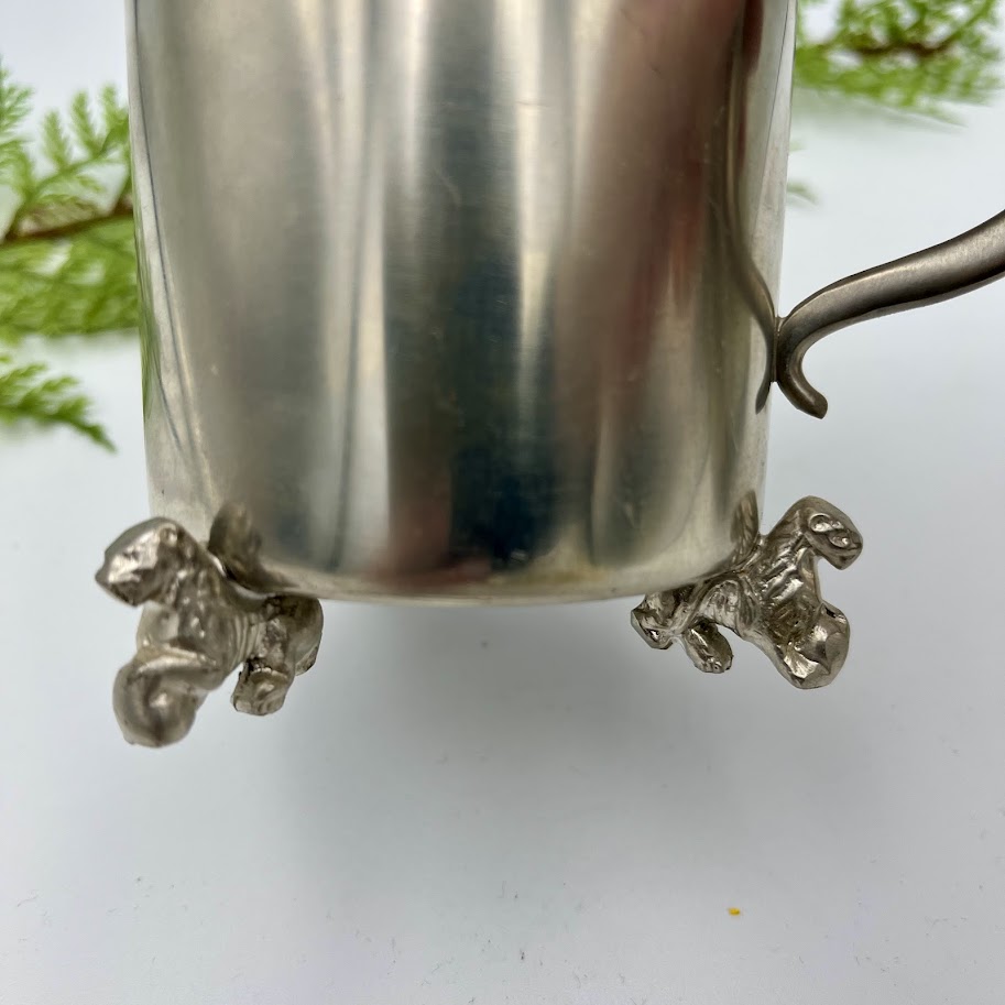 Kruset står på tre små figurformede løver som fødder og har et buet håndtag med en lille løve som pynt øverst.