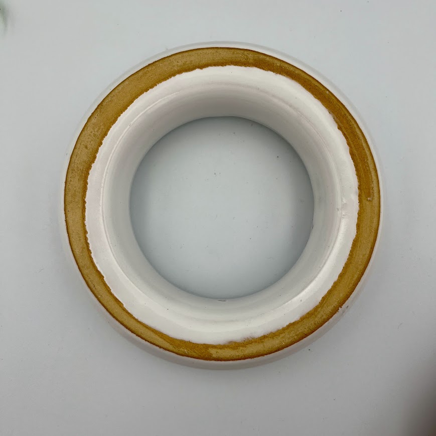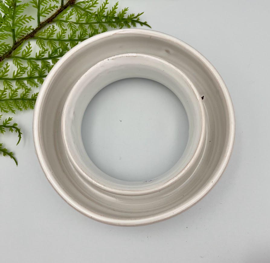 Enkel blomsterring i hvid keramik med bløde, organiske former.