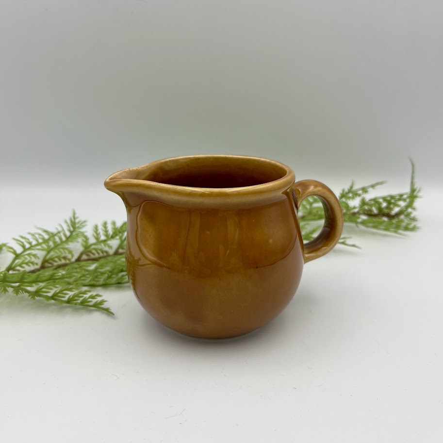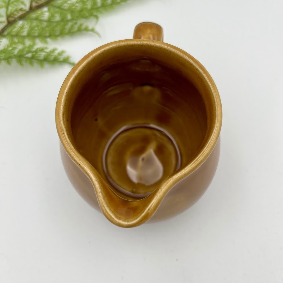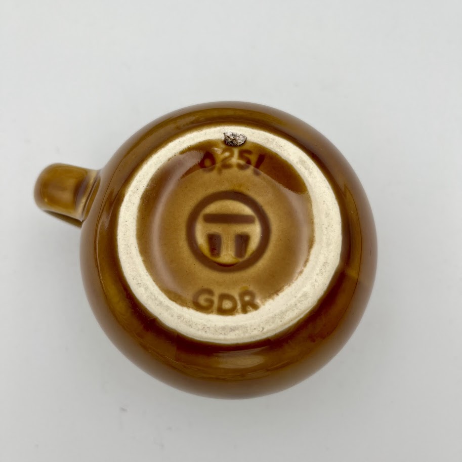 Den dybe, gyldenbrune farve er typisk for østtysk keramik fra midten af 1900-tallet og passer perfekt ind i retro- og landkøkkenstil.