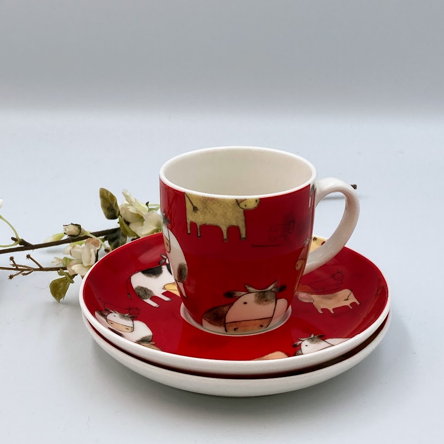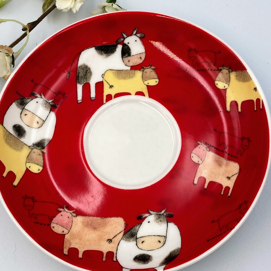 Flerfarvede køer kop og underkop