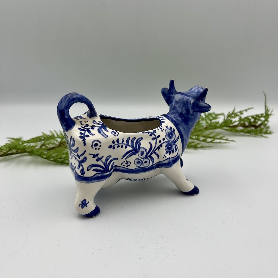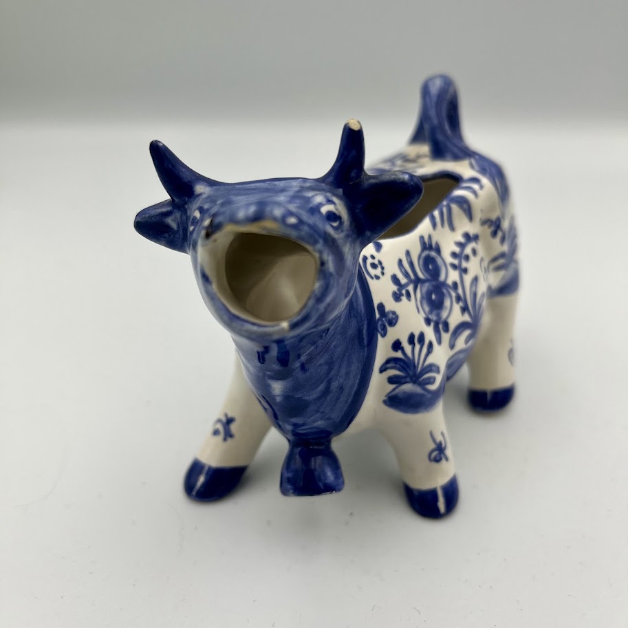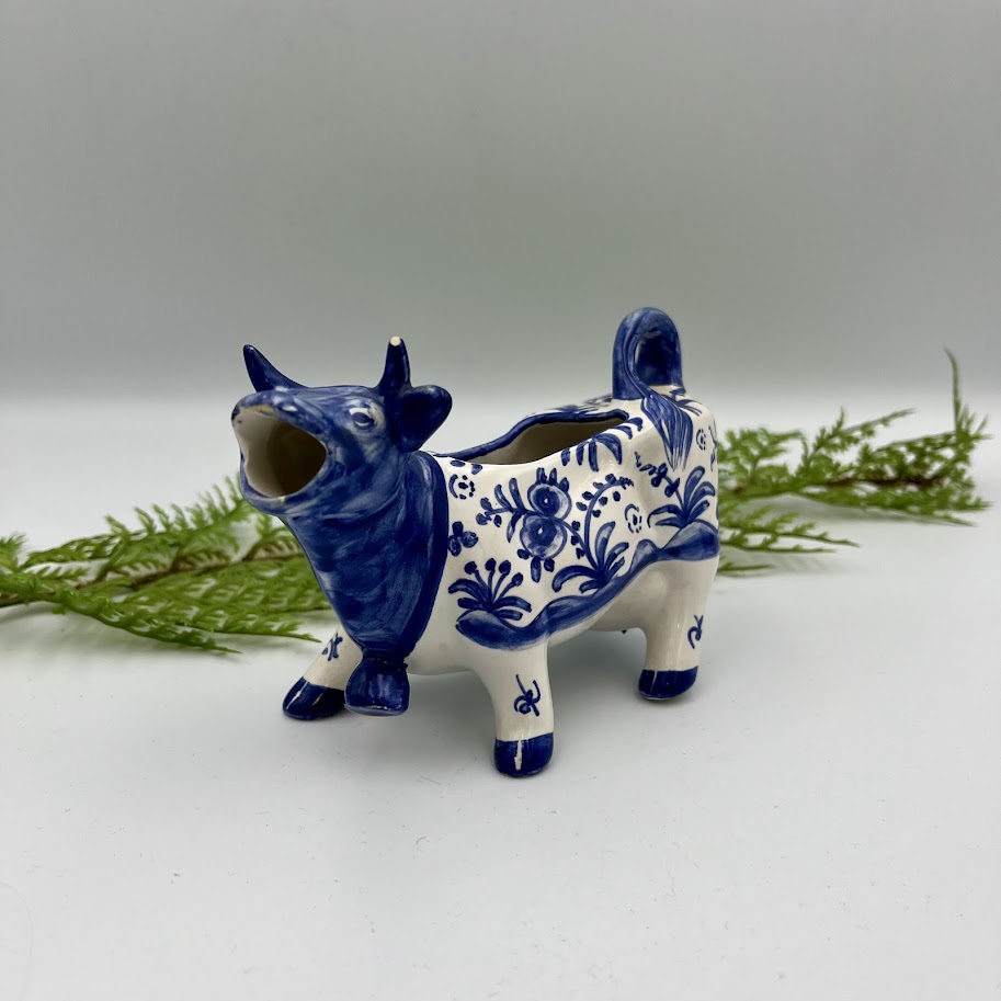 Fløden hældes ud gennem koens mund, hvilket giver et sjovt og dekorativt indslag på bordet. Perfekt til kaffebordet eller som en fin detalje i landlig eller nostalgisk indretning.
