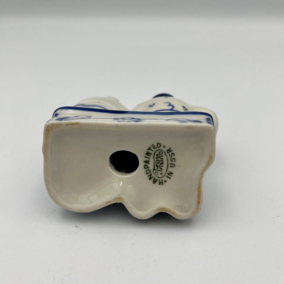 Charmerende porcelænsfigur fra USSR (Sovjetunionen) udført i klassisk blå og hvid dekoration.