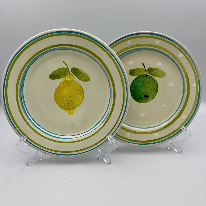 2 forskellige tallerkener med frugtmotiv – friske og dekorative.