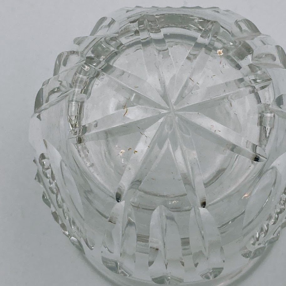 Vasen har facetslebne detaljer og klassisk stjernemønster i bunden, som giver et smukt lysspil i glasset.
