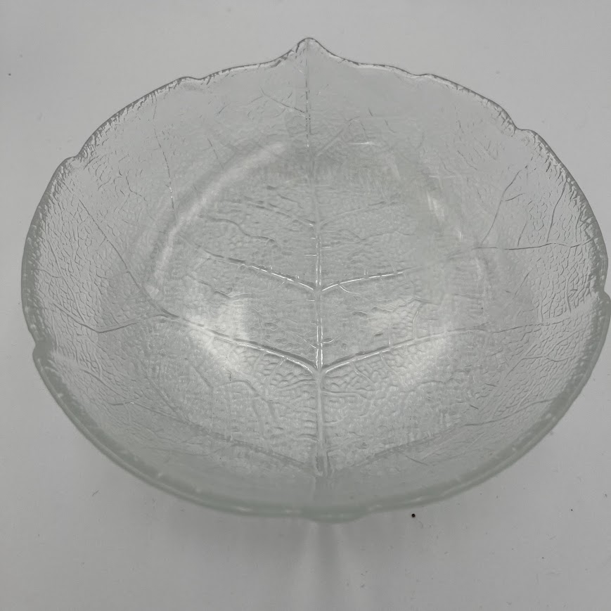 Skålene er udført i frosset glas med et dekorativt bladinspireret mønster, som giver et let og elegant udtryk.