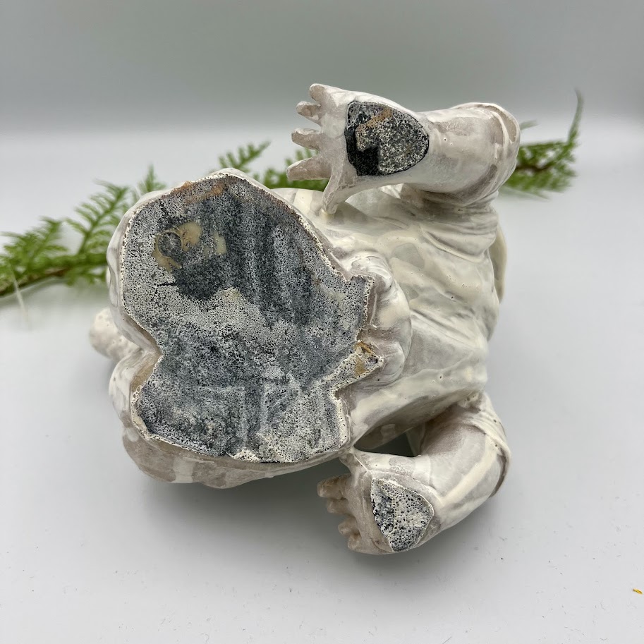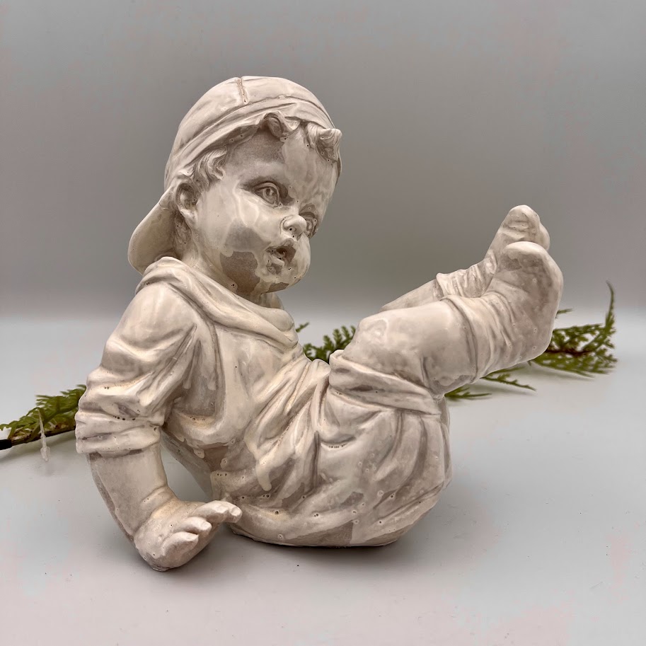 Udført i lys keramik/gips med et blødt, patineret udtryk, der giver figuren et nostalgisk og vintage præg.