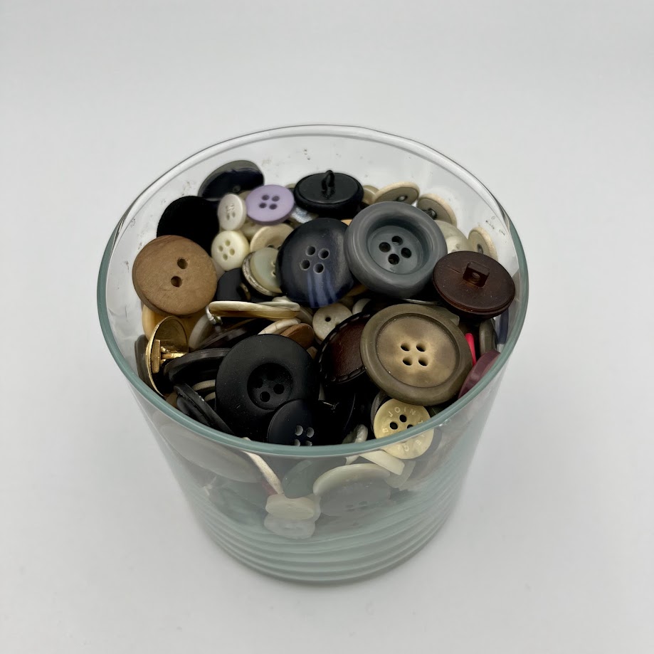 Et assorteret udvalg af knapper i forskellige farver, størrelser og materialer.